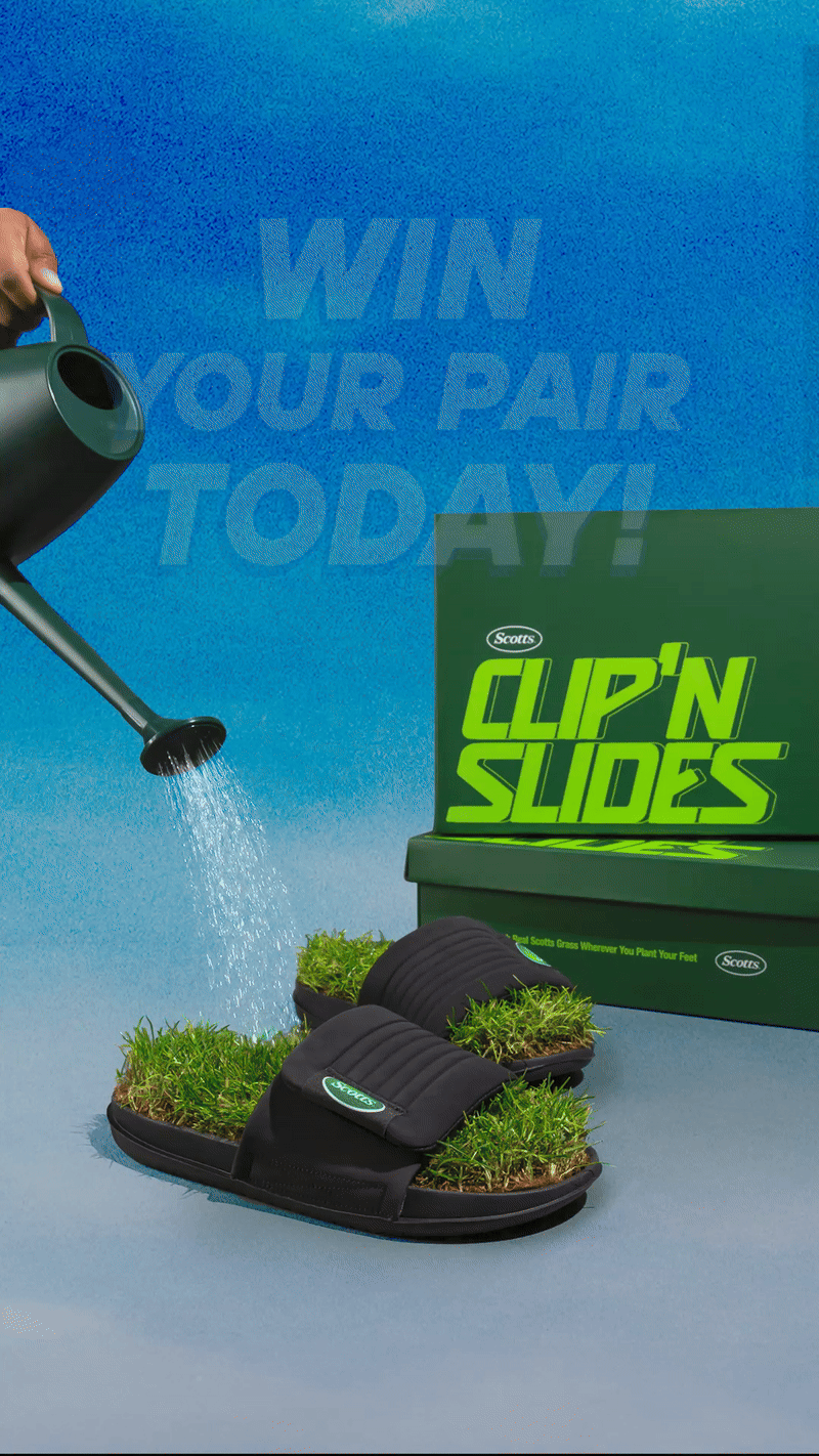 Scotts products keep your lawn lush, but not all of us have lawns. So made a pair of slides that let anyone enjoy the feeling of a well-kept lawn. The prototype got such an enthusiastic response on social media, we made a limited run only available via sweepstakes. Team Mark McColey / Copywriter Brian Marcocilini / ACD Shelby Del Vecchio / Photographer